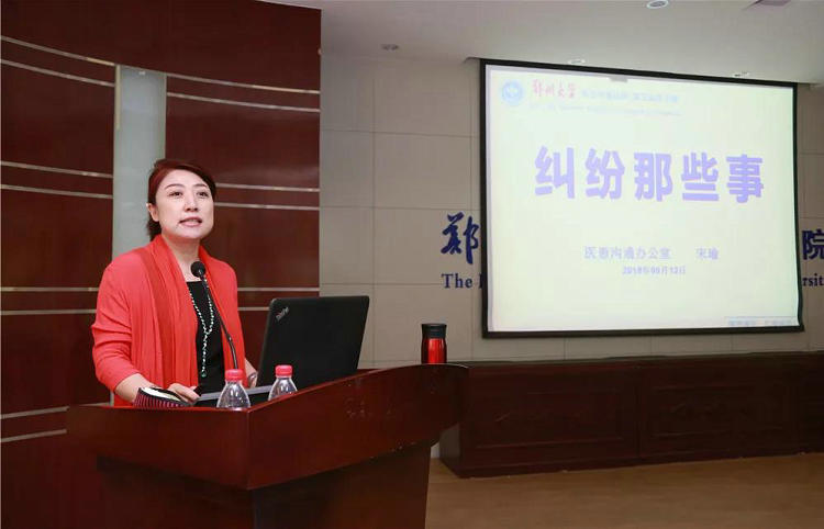医务科、科教科、宣传科、感染管理科、药学部、医患沟通办公室和人事科等职能科室负责人从专业的角度向新员工详细讲解了医院质量管理、医疗核心制度、药品相关法律法规、构建和谐医患关系、医院感染管理、科研教学管理及课题申报、医院文化建设、医务人员的仪容仪表和礼仪规范等相关理论知识和执业技能,进一步规范了新入职员工的职业标准,增强了安全意识,为以后更好的投入工作岗位奠定了良好、扎实的基础。