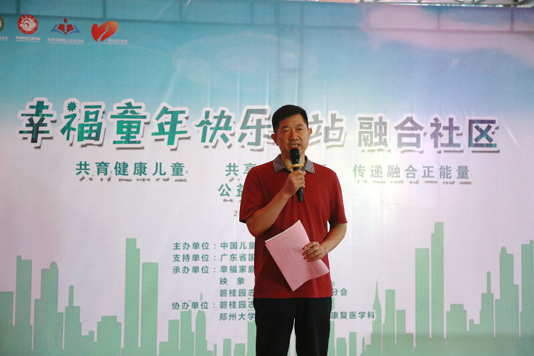 金秋九月,丹桂飘香。在这喜获丰收的季节,2018年9月14日上午,中国儿童少年基金会“幸福童年快乐e站”融合社区公益项目郑州站授牌仪式在郑州大学五附院儿童自闭症诊疗中心举行。中国儿童少年基金会幸福童年项目主任项居平、河南省关工委副主任葛纪谦、河南省妇联儿童部副主任刘芳华、郑州大学五附院院长郑鹏远、碧桂园志愿者协会魏兰主任等领导出席本次活动。郑州大学五附院儿童自闭症中心的近200名孩子及陪同家长参与活动。