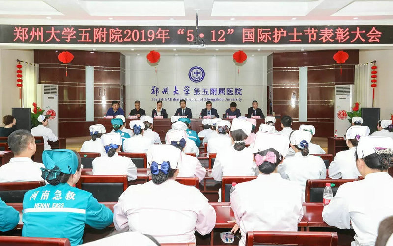 2019年5月9日下午,郑州大学五附院“5·12”国际护士节表彰大会在门诊楼五楼大会议室隆重举行。医院领导出席了本次活动,与全院护士长、200余名护士代表一起,共同庆祝 “5·12”国际护士节的到来。会议由医院副院长王少亭主持。