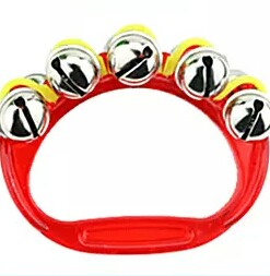成人手拿乐器,一面玩一面逗引孩子说:“打鼓咚、咚、咚,敲锣当、当、当,吹号哒、哒、哒”等。