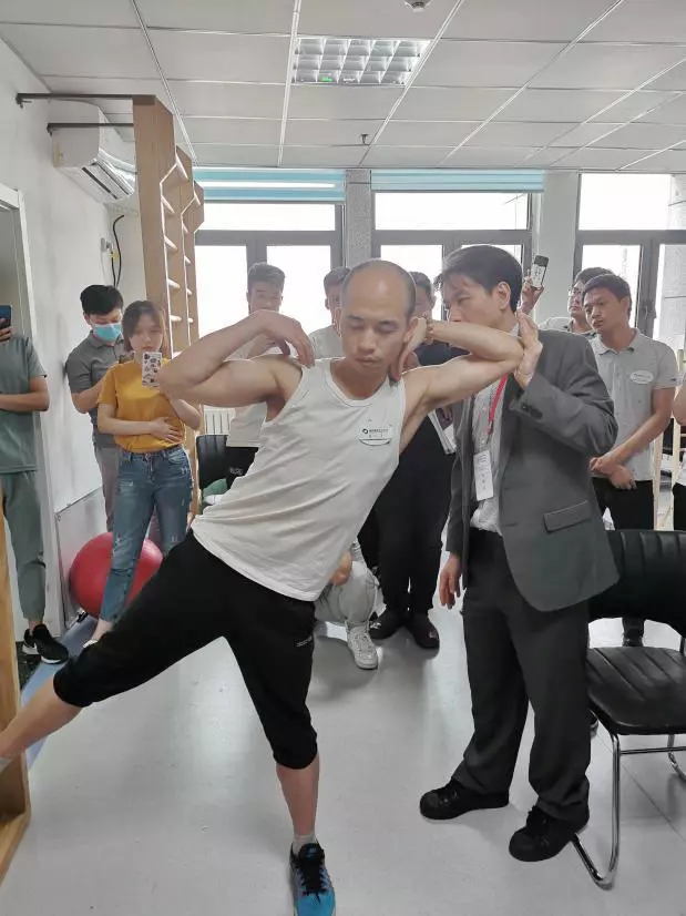 植思杰教授带领治疗师学习侧弯曲线和物理检查,系统性的自我矫正,日常生活运动(ADL),简易三维整个程序。