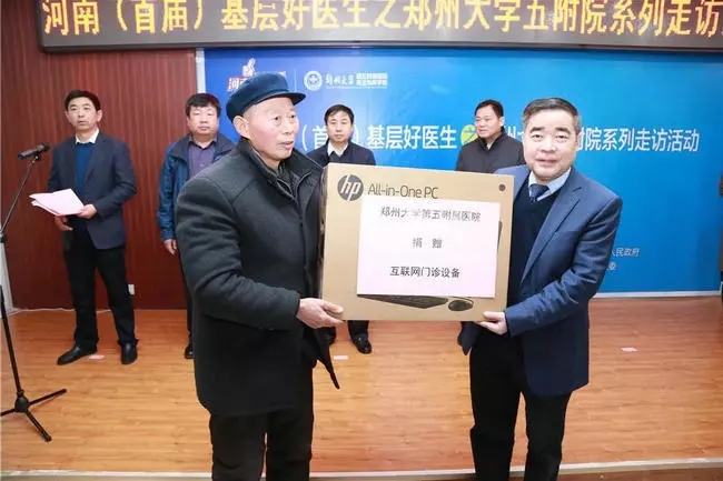 大家还记得 “河南首届基层好医生”评选出的 “十佳家庭医生”滑县村医吴义禄和“最佳医疗服务创新基层医生” 滑县村医王国杰吗?2018年3月23日,作为评选活动唯一协办单位的郑州大学五附院在郑鹏远院长的带领下、组织临床专家赴滑县开展系列走访活动,并赠送了网络设备,开通网络门诊,为百姓就医提供了方便。