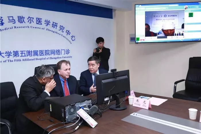 时隔一个月,2018年4月23日,诺贝尔医学奖获得者巴里•马歇尔(Barry J. Marshall)教授在郑州大学五附院网络门诊,与吴义禄医生进行远程会诊,为滑县当地村民诊查病情。吴义禄医生和患者对此表示非常满意。