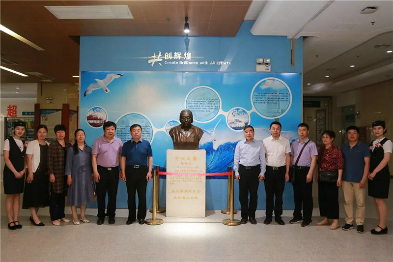座谈会后,朱光主席陪同万振非院长一行实地参观考察了康复医学科、康复医学工程科、院史馆等处,并在“感动中国”2013年度人物、医院原妇产科主任胡佩兰塑像前合影留念。