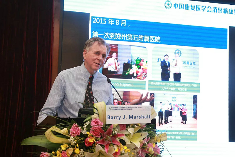 巴里·马歇尔因发现胃中幽门螺杆菌与慢性胃炎、消化性溃疡及胃癌之间的关系而获得2005年诺贝尔生理学或医学奖。自2015年起,马歇尔教授与郑州大学开展紧密合作,依托郑大五附院建立“郑州大学马歇尔医院”和“郑州大学马歇尔医学研究中心”。同时,马歇尔教授还是郑大五附院的兼职教授,与郑大五附院共同培养博士。