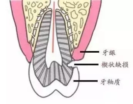 很多人觉得刷牙只不过是一件小事情,其实不然。现在,请你先对照镜子,张开嘴,看看你的牙齿根部,是不是像下图一样,隐隐约约有些凹下去了,形成横槽?如果是,那你就得当心了!你的牙齿出现危险了!因为这种横槽由于外形酷似木匠用的楔子,医学上称之为“楔状缺损”!