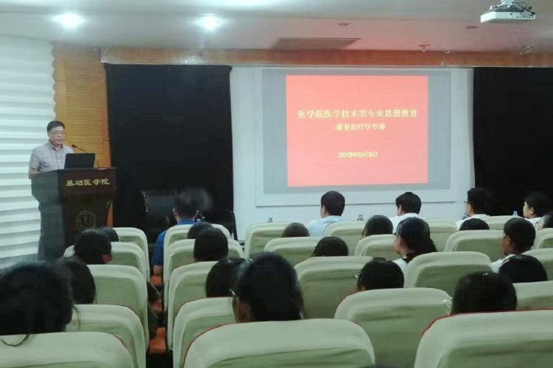 2019年9月3日晚7时,郑州大学第五临床学院(郑州大学五附院)在郑州大学基础医学院二楼会议室举办郑州大学医学技术类专业思想教育暨2019级郑州大学康复医学系新生见面会。
