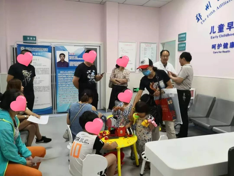 秉承“专家移动,病人不动”的理念。2019年9月8日,中心邀请了上海瑞金医院的生长发育专家孙文鑫教授举行义诊活动。当日,离义诊开始时间还有一个小时,儿童早期发展与评估中心已经有许多家长和孩子在等候,其中有来自南阳、商丘、许昌、周口等的外地病人,也有已经辗转省内几家大医院的“疑难杂症”患儿。