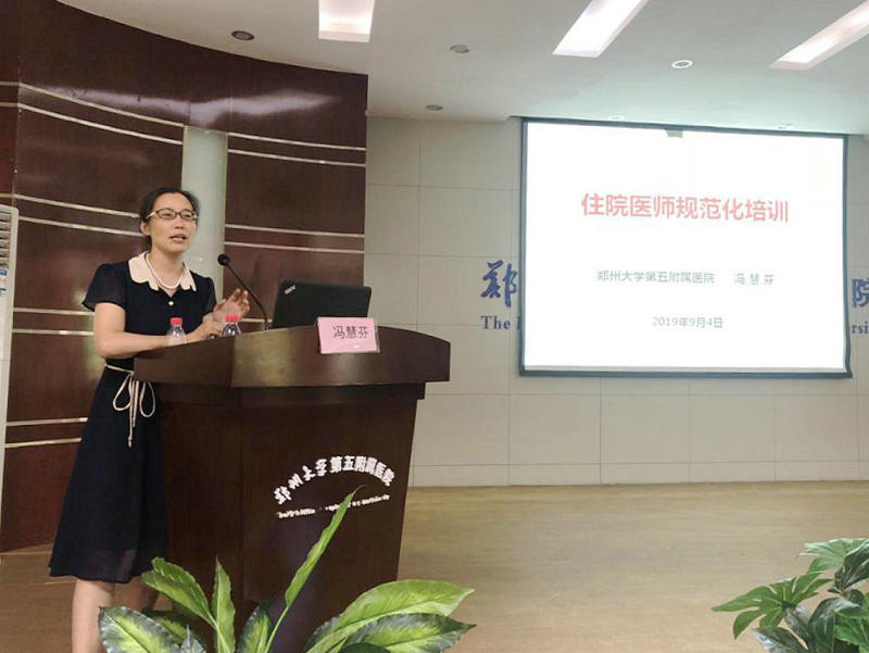 ▲ 科教科冯慧芬副科长讲授《住院医师规范化培训》、《住院医师形成性评价与终结性评价》、《医学科研与论文写作》