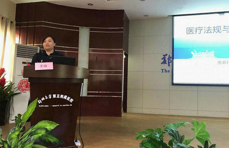 ▲ 医务科王琰副科长讲授《医疗法规与制度培训》