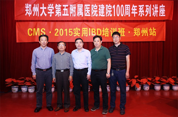 从左至右:消化内科一病区冯百岁教授、中南大学湘雅二院、国内著名IBD专家吴小平教授、我院院长郑鹏远教授、河南省人民医院李修岭教授、消化内科二病区夏兴洲教授。