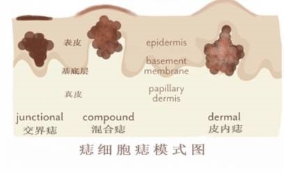 色素痣几乎人人都有,仅数量或者大小不同而已,它可以发生于身体的任何部位,面部、四肢、腰、背、手、足都可以出现。颜色可以为黄色、褐色或者黑色,也可呈蓝色或者紫色 色素痣根据组织学分类,分为三种类型:1、交界痣。2、混合痣。3、皮内痣。儿童及青年刚生出的痣多数是交界痣,随后这些痣逐渐演变成复合痣,并多数最终形成皮内痣。