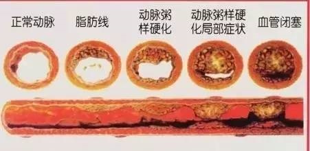 由下图我们可以看到由于脂质在血管内膜下的沉积,最终一步步导致我们血管的狭窄,直至闭塞。