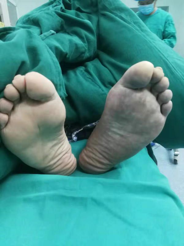 ▲ 图2:左足紫绀,右足皮色苍白