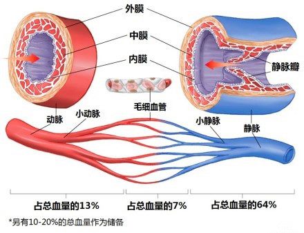 ▲ 动脉、静脉和毛细血管