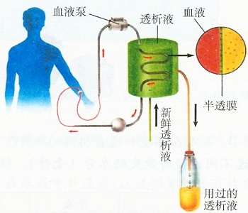 透析是通过小分子经过半透膜扩散到水(或缓冲液)的原理,将小分子与生物大分子分开的一种分离纯化技术(图2)。透析疗法是使体液内的成分(溶质或水分)通过半透膜排出体外的治疗方法,一般可分为血液透析和腹膜透析两种。其中血液透析是肾内科常见的透析方式。血液透析简称血透,通俗的说法也称之为人工肾、洗肾,是血液净化技术的一种。血液透析首先通过血管通路将体内血液引流至体外,经过透析机器及透析液进行物质交换,清除体内的代谢废物、维持电解质和酸碱平衡;同时清除体内过多的水分,并将经过净化的血液回输到体内。