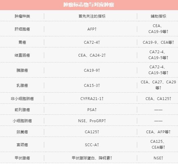 每个肿瘤标志物能对应一种或几种肿瘤,而不是一一对应的关系。
