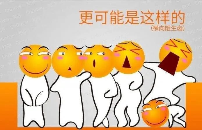 但是在进化的过程中牙齿的排齐总长度如果大于颌骨的长度,牙齿就会在颌骨中拥挤,由于上下颌第三磨牙及上下颌尖牙萌出最晚所以它们极有可能萌出受阻,就成了阻生齿。