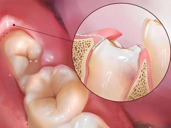 智齿倾斜牙龈就会形成盲袋,盲袋内就容易藏入食物残渣及菌斑不易清洁出,之后容易形成炎症。