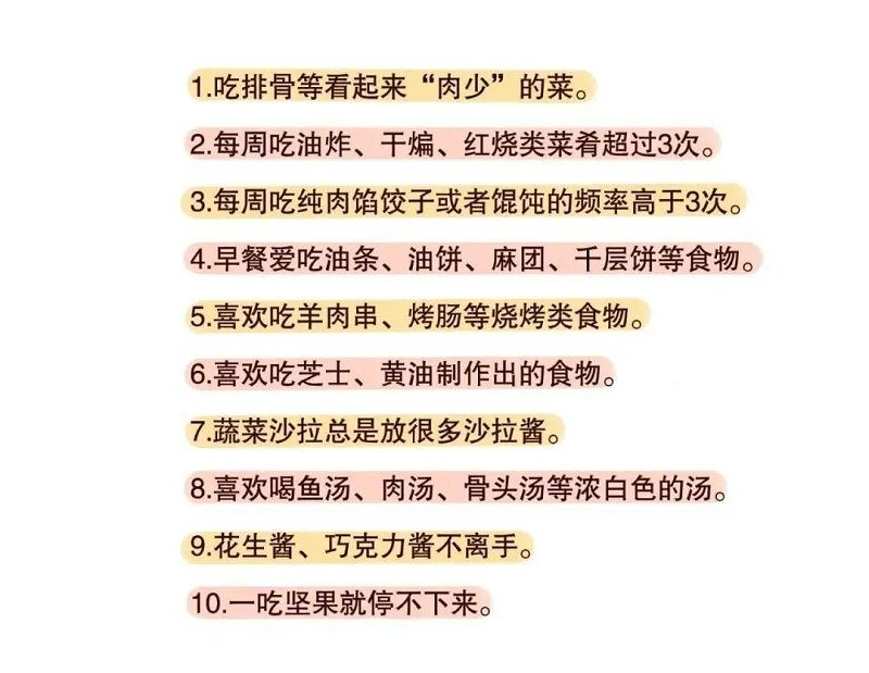 参考下图,如果你有下面这些爱好的话,就要小心日常油脂摄入已经超标了哦!
