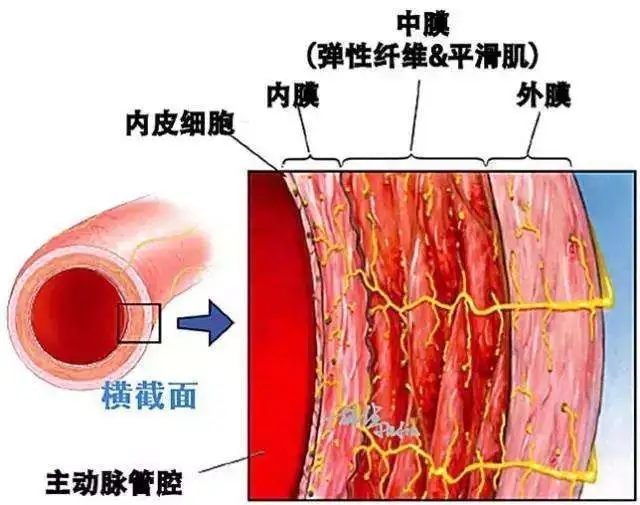 胸主动脉是体循环的动脉主干(图1),起于心脏的左心室,根据胸主动脉行程可分为三部:主动脉升部(升主动脉)、主动脉弓和主动脉降部(降主动脉)。主动脉管腔直径大,在体内至关重要,类似我国的长江和黄河,因此也成为大动脉。主动脉管壁又可分为内膜、中膜及外膜三层(图2)。